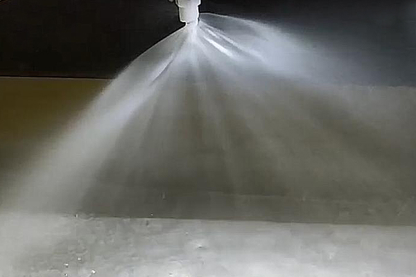 2021.6.3 礦山石料破碎除塵噴霧工程,深圳市鑫龍環(huán)??萍加邢薰緡婌F除塵(超聲霧化除塵)是最簡(jiǎn)便和最經(jīng)濟(jì)的除塵方式,并且除塵效果良好。噴霧除塵是將水霧化處理成許多高速運(yùn)動(dòng)的密集細(xì)小水滴,是借助壓縮空氣沖擊共振腔產(chǎn)生的超聲波,利用超聲波將水霧處理成濃密的微細(xì)霧滴,這些微細(xì)霧滴在相對(duì)密閉的空間內(nèi)可以捕獲、凝聚微細(xì)粉塵,使得微細(xì)粉塵的黏性、濕度和比重顯著增加,進(jìn)而使得粉塵迅速沉降下來(lái),逐漸實(shí)現(xiàn)除塵的目的。